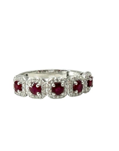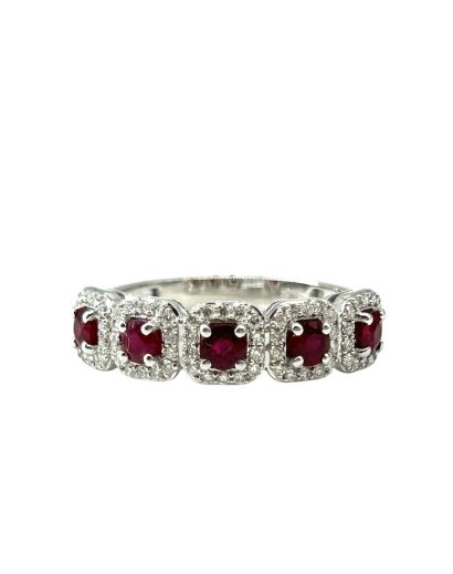 Veretta in argento 925 con quarzi rossi e bianchi quadrati