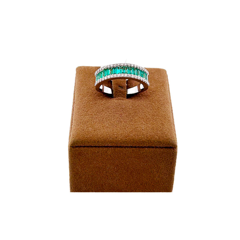 Anello Veretta in oro bianco con smeraldi e brillanti