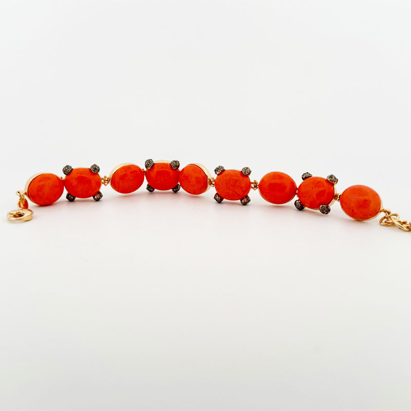 Bracciale con argento ramato e pietre dure cabochon con pasta di corallo