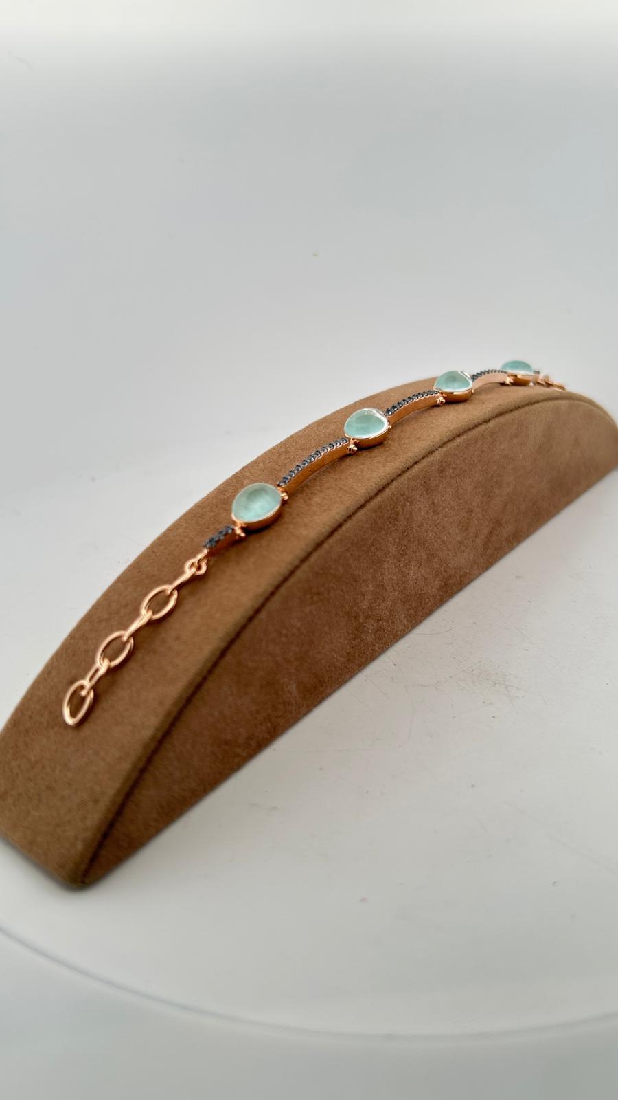 Bracciale in argento 925 con pietre di luna azzurre e zirconi