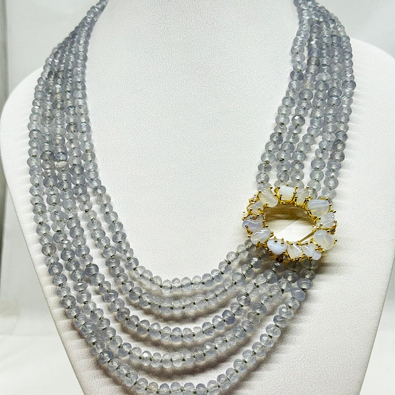 Girocollo a 5 fili e Quarzo grigio