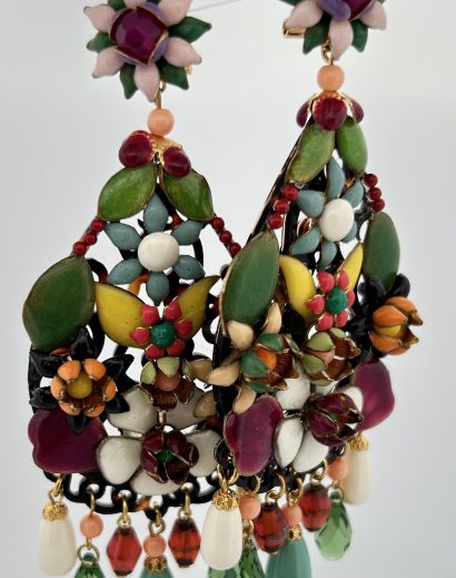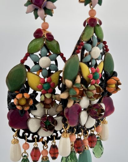 Orecchini Pendenti con Fiori colorati smaltati in rilievo