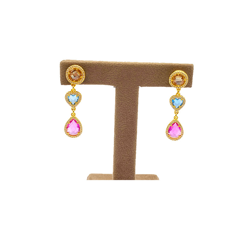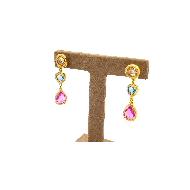 Orecchini pendenti in argento dorato con quarzi colorati e zirconi