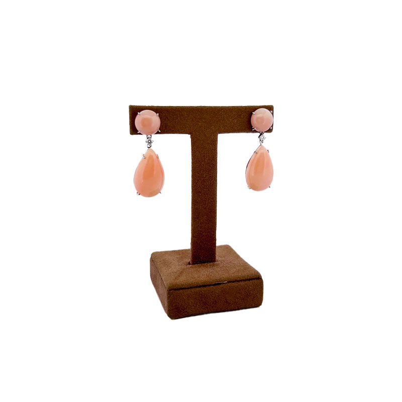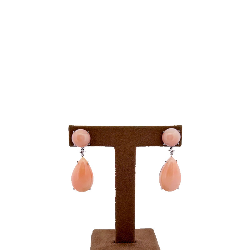 Orecchino pendente in oro bianco con brillanti e Corallo rosa