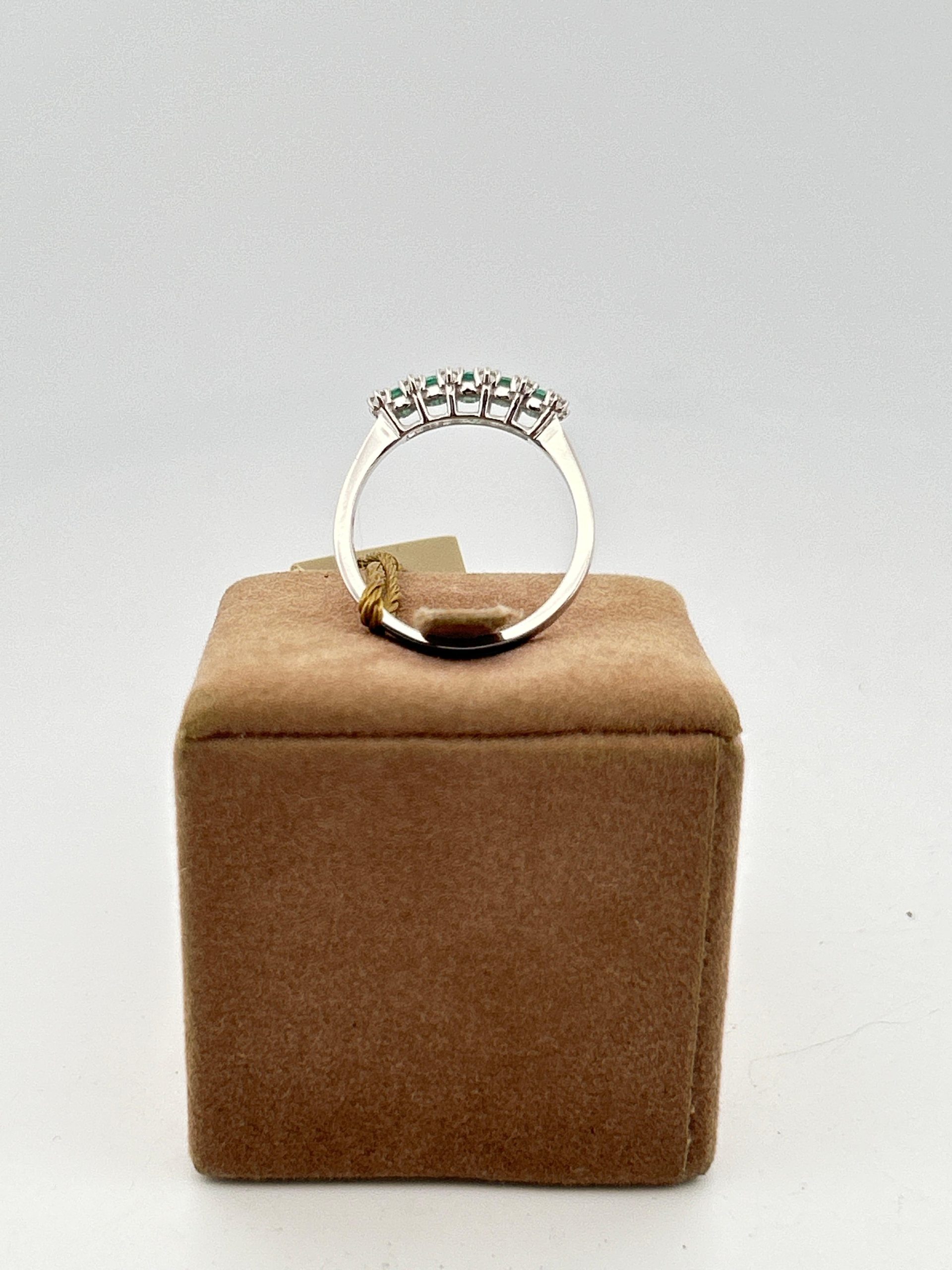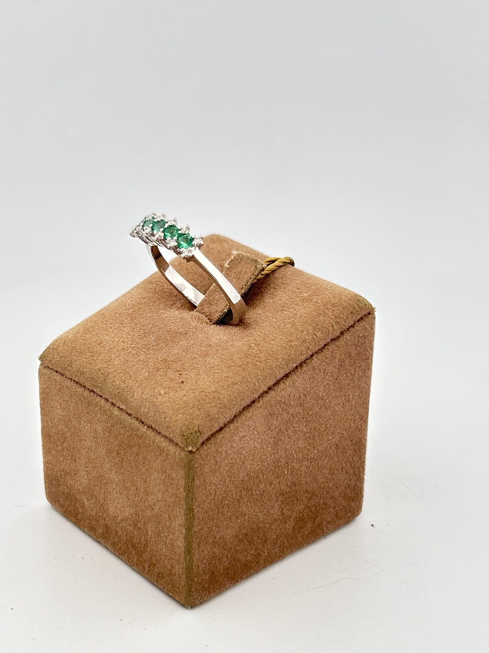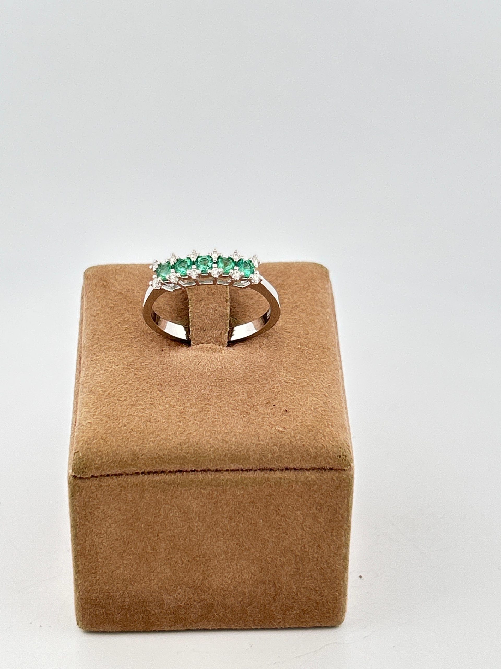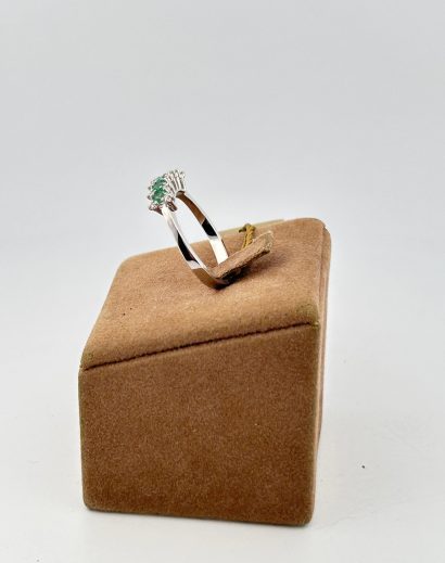 Composto da smeraldi naturali dal colore verde vivido e diamanti taglio brillante selezionati per purezza e luminosità. Design studiato per massimizzare la brillantezza delle pietre e offrire un equilibrio armonioso tra colore e luce.