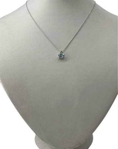 Collana in oro 18kt con acquamarina ovale e brillantino