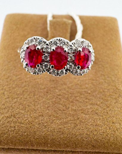 Anello trilogy con rubini e diamanti