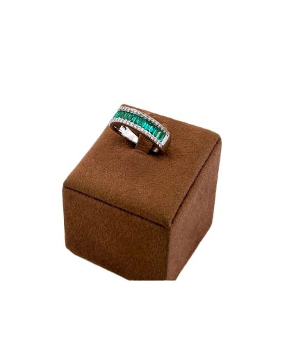 Anello Veretta in oro bianco con smeraldi e brillanti