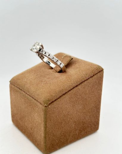 Anello solitario in oro bianco con diamante centrale e laterali