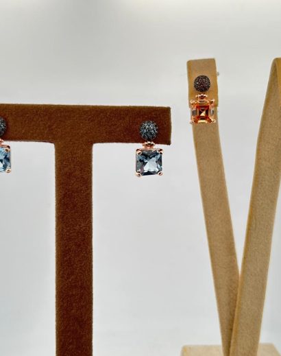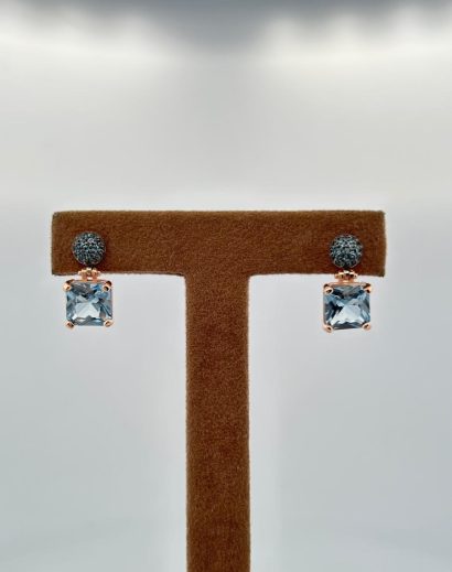Orecchini in argento 925 in quarzo azzurri con pavé di zirconi