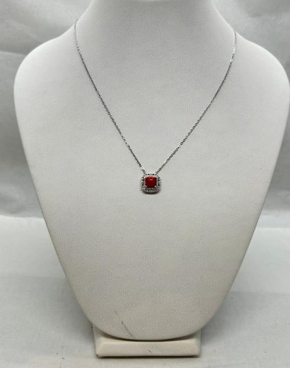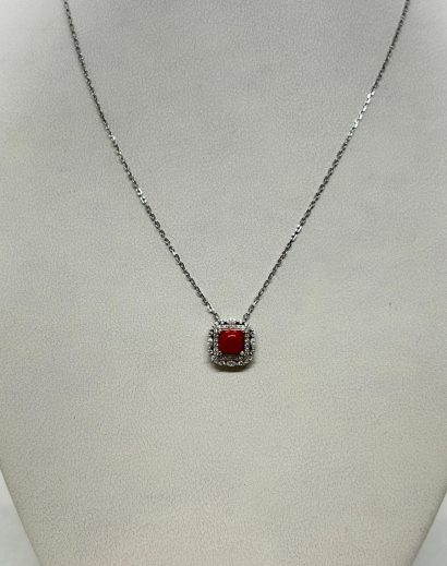 Collana in argento con corallo naturale e zirconi. ” I colori delle immagini potrebbero essere alterati per via delle luci nelle foto “