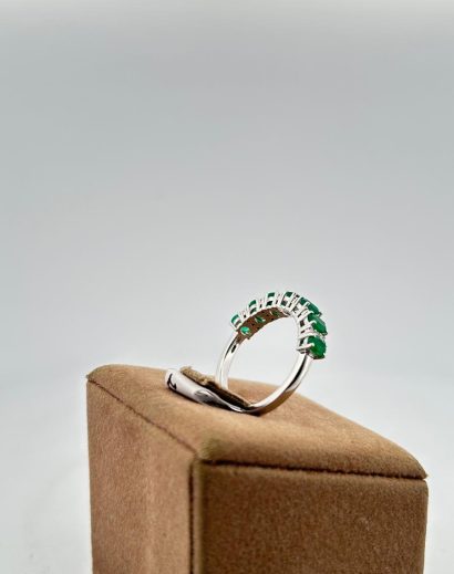 Anello in oro 18 kt veretta con smeraldi e brillanti. S 1.32 – B 0.14 Per richiedere più info sulle gemme contattaci. Se desideri la confezione regalo, contattaci al momento dell’acquisto. “i colori delle immagini potrebbero essere alterati per via delle luci nelle foto”
