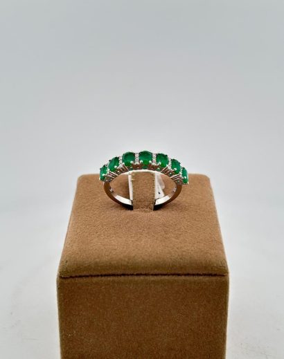 Veretta in oro bianco 18 kt veretta con smeraldi e brillanti
